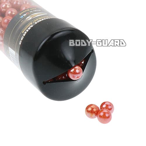 | コメント | 鉛玉等と違い、玉の色合いが綺麗で鑑賞用としても人気です! また、弾を回収する際に見つけやすいかもしれません。 パッケージに265個入りと記載されていますが、当店でお調べしたところ、バラツキがあり260個前後入っております。 |