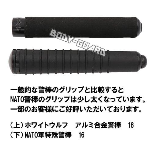 | コメント | 一般的に16インチと21インチは日本人の体格向けです。 グリップはホワイトウルフ警棒のグリップより太めになっており、 大きい手の方は握りやすく使いやすいかもしれません。 |