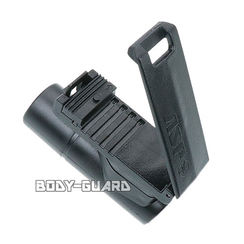 | 商品説明 | プロ仕様のASP製の高性能ホルスターです。 耐久性も高く、実用品質も非常に高いです。 バトンが不用意に飛び出さないようにテンションクリップが内部にありバトンを保持します。 警棒を収納したまま入れることはもちろん伸ばした状態でも収納することができます。 ベルト通しはベルトの幅に合わせて幅調節が可能! また、12段階でホルスターが回転固定可能となっています。 ※写真に載っている警棒は付属しません |
