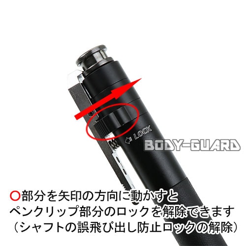 | 商品説明 | ワンタッチ式の三段伸縮警棒です。 警棒本体についているロックを右に回して解除し、ペンクリップ押すとシャフトが飛び出します。 飛び出す勢いで相手を攻撃することも可能です。 非常に強い威力で飛び出すので、 振り出す間合いがない状況でもすぐに利用可能な状態に持ち込めます! ※ペンクリップ先からシャフトが飛び出します シャフトは硬い地面に叩きつけて収納するタイプとなります。 |