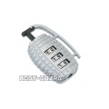 | 番号変更方法 | ※初期設定値は「000」です (1)本体底部分にある黒いボタンをボールペンや細い棒で押します。 (2)押した状態のまま、ダイヤルを回し3桁のお好みの番号を設定します。 (3)お好みの番号を設定したら、ボタンから外します。 |