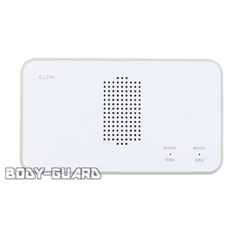 | その他 | ※本品は強盗や盗難、空巣などの犯罪防止を保証するものではありません ※医療施設内や心臓のピースメーカーを使用されている人の近くでは使用しないでください ※予告なしに仕様変更がある場合があります ※受信器の電池交換をしても登録した内容は消えません ※増設する場合、ワイヤレスチャイム関連商品の型番「EWS」で始まる商品のみ互換性があります |