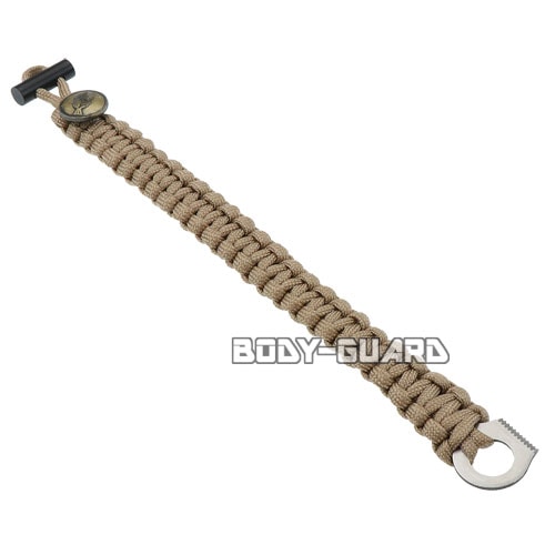 | 商品説明 | 普段はオシャレなブレスレットですが、 ほどくと非常に丈夫なロープとして使用できる優れもの! パラコードとは、パラシュートコードの略で、パラシュートのラインとして使用されている紐です。 ライターやマッチを使わずに火を起こせる、小さな着火剤もついていますので、 キャンプなどのアウトドアだけでなく、防災グッズとしてもおすすめです。 黒い棒の部分がメインユニットになります。 ※火打ち金属(ブレード)はブレスレット内に内蔵されています |