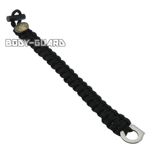 | 商品説明 | 普段はオシャレなブレスレットですが、 ほどくと非常に丈夫なロープとして使用できる優れもの! パラコードとは、パラシュートコードの略で、パラシュートのラインとして使用されている紐です。 ライターやマッチを使わずに火を起こせる、小さな着火剤もついていますので、 キャンプなどのアウトドアだけでなく、防災グッズとしてもおすすめです。 黒い棒の部分がメインユニットになります。 ※火打ち金属(ブレード)は出ています |