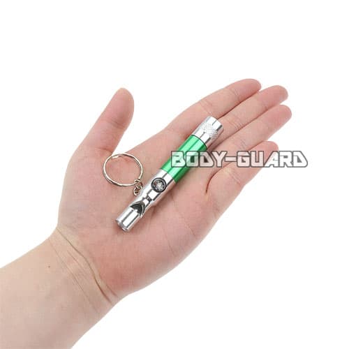 | コメント | LEDライトにホイッスルがついた便利な商品です。 緊急時や災害時、アウトドアでも!!活躍の場が広そうな商品です。 ライトの先端部をしめるとスイッチON。緩めるとスイッチOFF。緩めていくと先端部がはずれますので電池交換ができます。(LR41x4) |
