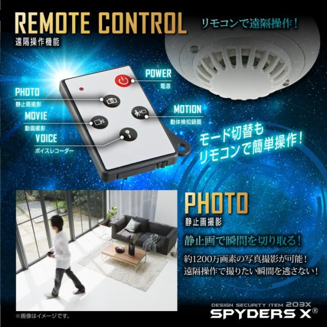 | 商品説明 | 火災報知器ではありません!ビデオカメラです! 届いたその場ですぐに使える!大容量64GBメモリー内蔵で、長時間録画保存が可能です。 動画撮影はもちろん、写真撮影や音声のみの録音機能も備わっています。 さらに動きを検知して自動撮影もできる優れもの! お店や倉庫の防犯用としてだけでなく、従業員の金銭その他に関わる不正行為を暴く際などにも活躍します。 一般的な防犯カメラは犯罪抑止の効果も強いのですが、小型カメラはむしろ、犯罪の決定的瞬間を撮影するのに向いてます。 【1】細部まで鮮明な映像の撮影が可能!FULL HD1080Pの高画質映像!! 【2】クリアな映像のまま従来の方式より2倍以上の圧縮効率を誇るH.264コーデックを採用! 【3】リモコンで遠隔操作!天井に設置しても安心! 【4】レンズ位置に注目!斜め俯瞰アングルのレンズで室内を見やすく撮影! 【5】動画解像度が4種類から選べる!解像度変更もパソコンから簡単設定! 【6】暗視補正機能なら光が少ない室内でも自動で明るく補正! 【7】撮りたい瞬間、リモコンで約1200万画素の写真を撮影! 【8】真っ暗な場所など撮影しにくい場面に最適なボイスレコーダーでクリアな音声記録が残せる! 【9】長時間稼働にうれしい動体検知機能で必要な場面だけを録画! 【10】内蔵メモリーがいっぱいになっても、繰り返し録画機能で最新の記録が残る! ■本製品は自分や大切な家族、財産等を守るための防犯用に使用することを目的としています。 |