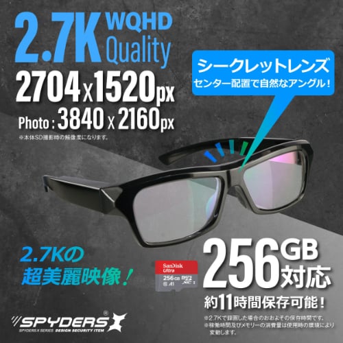 防犯カメラでは難しい決定的瞬間の記録にも最適な小型カメラです! 【1】2704×1520pxの超高解像度2.7K画質を実現!細部の映像までとことん美しい! 【2】メガネの中央にレンズを配置、見たまま録れる安心撮影! 【3】電源投入時に自動で録画を開始するので撮り忘れの失敗を軽減。 【4】耳元のフレームに操作ボタンを配置、かけたままハンズフリーで録れる簡単操作! 【5】ラバー製バンドストラップ付属で自転車やバイクに乗りながらの撮影も安心! 【6】外部電源&繰り返し録画機能で継続録画が可能に! 【7】microSDカード 256GB対応! 【8】付属のOTG対応USBケーブルで観たいときにスマホから直接データ再生可能! 【9】パソコンとUSBケーブルでつないで、データの確認・移行も簡単! 【10】証拠の精密さを上げる撮影日時の表示を簡単に設定可能! 【11】バンドストラップや眼鏡ケースなど充実した付属品をセット! ■本製品は自分や大切な家族、財産等を守るための防犯用に使用することを目的としています。 |