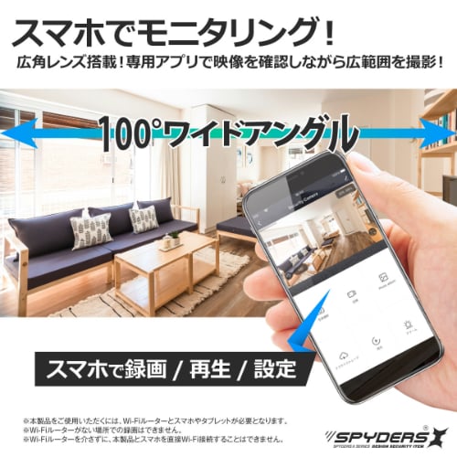 | 製品機能 | ・動画撮影 ・静止画撮影 ※スマホのみ ・赤外線撮影(不可視) ・動画検知録画 ・オート録画機能 ・外部電源機能 ・繰り返し録画 ・スマホ操作 ※一部機能はスマホ等によるアプリでの操作が必要となります。 ※本製品はスマートフォンによる専用アプリでWi-Fiに接続することで使用可能になります。 ※本製品にはリムーバブルディスク機能がありません。またmicroSDカードに保存されたデータをパソコンで再生することはできません。microSDカード保存のデータは、専用アプリで再生できます ※本製品は、ポケットWi-Fiはサポートしておりません。事前に必ずご利用になるWi-Fi環境を確認してください |
