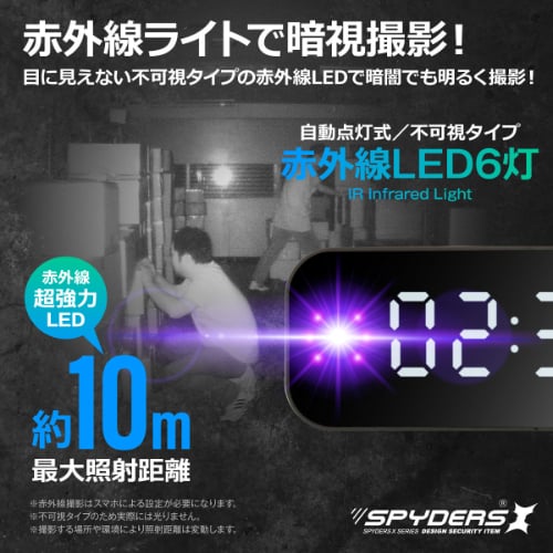 高性能な赤外線LEDを6灯搭載し、真っ暗な環境でも撮影OK!