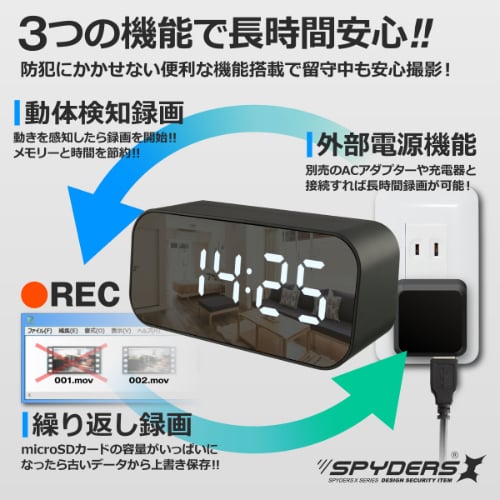 スマホで録画・再生ができる、置時計型のコンパクトカメラです。
