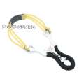 | 商品説明 | 左右3本までゴムを装着できるスリングショットです。 グリップ部分を紐で巻いている独特なデザインなのでインテリアとしてもオススメです。 一般的な丸ゴムのスリングショットより、ゴムの付け替えが簡単です! ゴムを固定する付近にある隙間に、左右の外側からゴムを差し込む方法になります。 替えゴムは装着されていない状態で付属されています。 装着のコツは、「店長より」に記載があります。 |