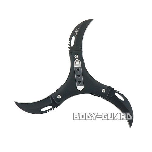 TOP武道具・その他 忍者ツール 手裏剣 サイクロン 価格: ¥2,545 (税込 ¥2,800) 販売期間: 数量: 個 在庫: × 在庫 × 返品についての詳細はこちら 説明 お部屋のインテリアにお勧め!忍者が使う主な武器、手裏剣です。刃を収納する場合は、刃の根元にギザギザになっている支えを倒して収納する形となります。※商品は1個の価格です。 サイズ ・オープン 約20cm・クローズ 約10cm カラー ブラック 重量 約147g 目安になります。 状態 裏面にクリップが付いております。 素材 スチール その他 人などに投げつけますと大変危険ですのでおやめください。 コメント 刃が鋭利になっていますので取り扱いには十分にご注意ください。