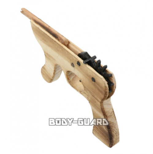 | 商品説明 | 輪ゴムを使用する手軽に遊べる木製ゴム銃です。 ゴムを飛ばすので、怪我の心配も少なく遊べます。 最大3本連続での輪ゴム発射が可能! (使用方法) 1.本体先端に輪ゴムをかけて引っ張り、輪ゴムの反対側を黒いパーツにかける 2.本体のトリガーを引く ※黒いパーツはグリップの上のほうにあるものです ※複数のゴムをセットする時は、黒いパーツの奥(ストック側)からセットして下さい |