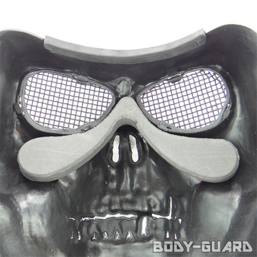 | コメント | ドクロマスク。いわゆるスカルマスクですね。 以前から取り扱っているドクロマスクとの違いは ゴムの固定部分が4点→2点になっていることと、 後頭部の緩衝材がなくなっていることです。 この商品のご購入を検討されている方は、どういうものかお分かりですね。 緩衝材の取り付けがいまいちだったりしますので、ゴムも含め ご自身で加工されるのもよろしいかと思います。 悪用厳禁です! |