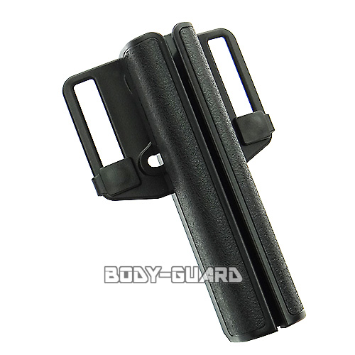通常のホルスターのように上に引き抜くこともできますが、伸ばした状態では引き抜くのが大変です。その場合はサイドに切れ目が入っていますので真横にバトンを取り出すことも可能です。