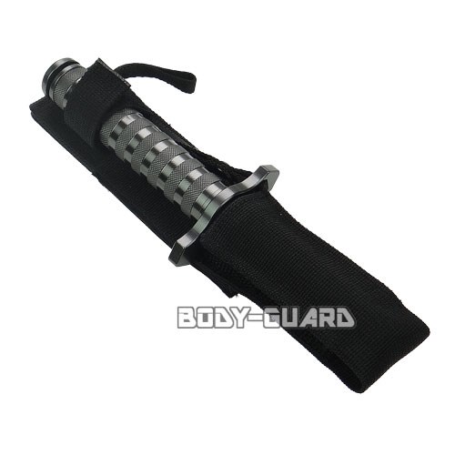 アルミ製のグリップが採用されている鍔付の三段伸縮警棒です。