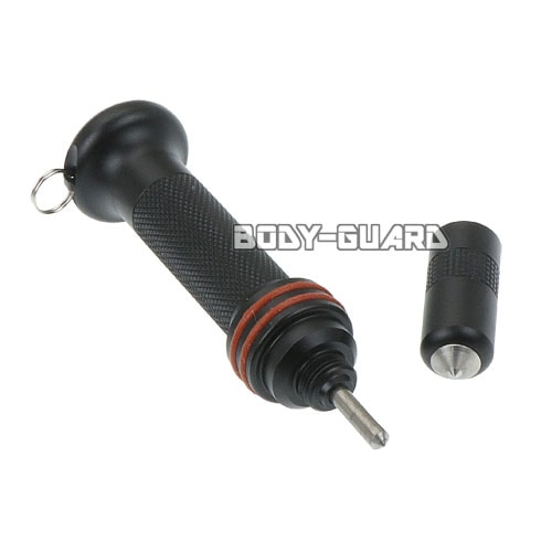先端のガラス割りを外すと、中にはポンピング式の小さなガラス割りが備わっており、