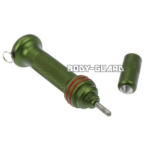先端のガラス割りを外すと、中にはポンピング式の小さなガラス割りが備わっており、