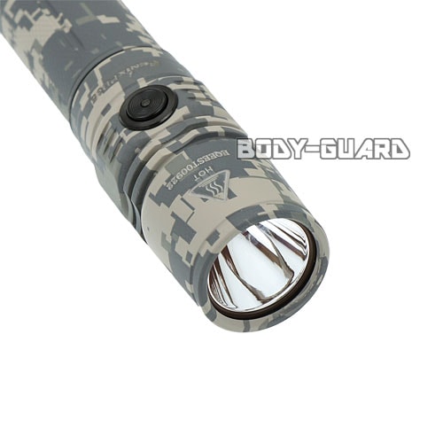 ミリタリー好きには魅力度の高い、お洒落なデジタルカモ柄のフラッシュライトです。