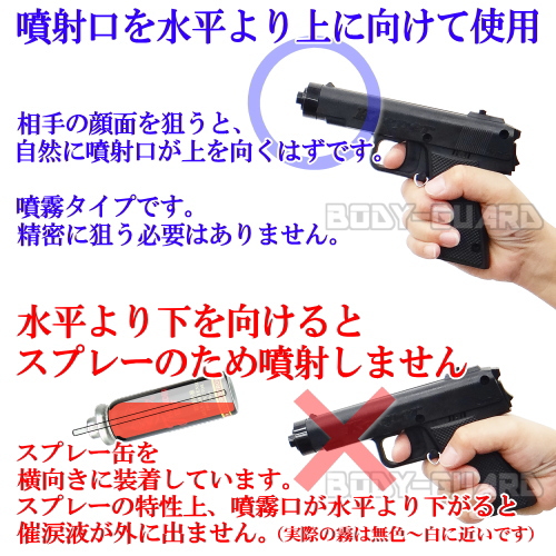 暴漢の顔面方向に向け、セーフティーピンを抜いてトリガーを引くだけです。