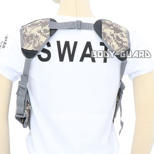 左脇にホルスター、右脇に2連のマガジンポーチを備えたショルダーホルスターです。