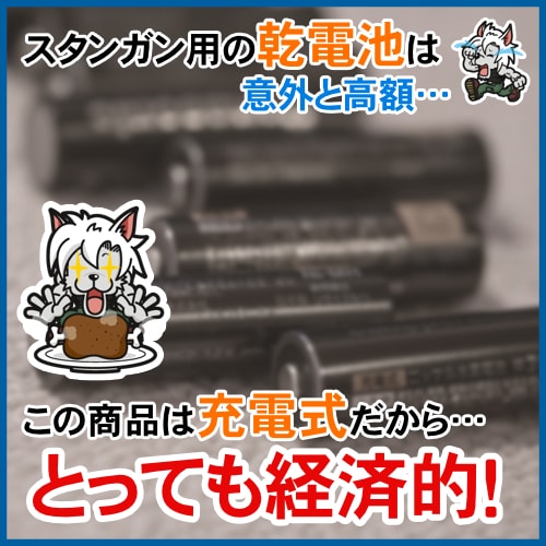 通常スタンガンで使用するアルカリ9V電池は価格が高いですが、こちらは充電式ですので経済的にもメリットがあります。